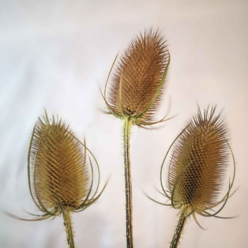 Bring a touch of rustic elegance to your floral designs or craft projects with our locally grown Teasels (Dipsacus fullonum). Known for their distinctive conical seed heads and prickly stems, these naturally dried botanicals add bold texture and structure to any arrangement.